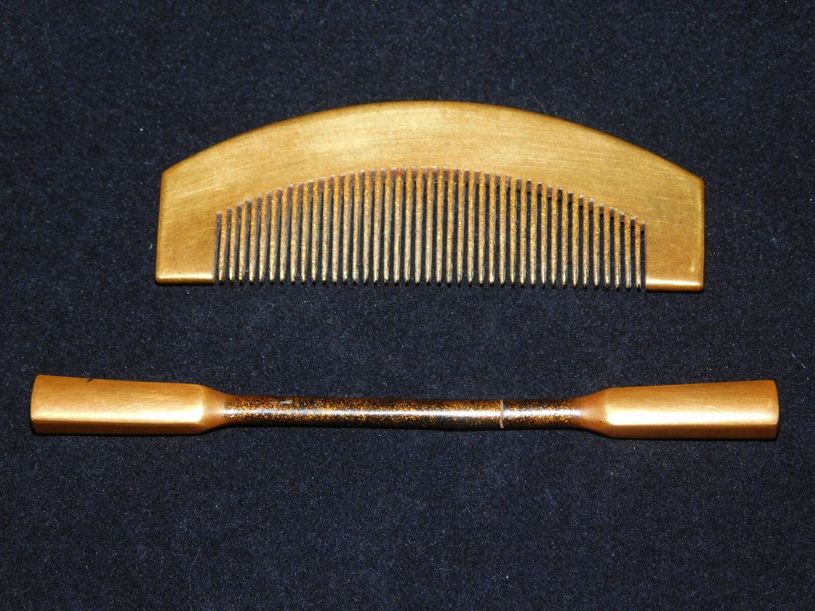 蒔絵の櫛と笄 Urushi lacquer work ornamental comb and hair pin(No16)