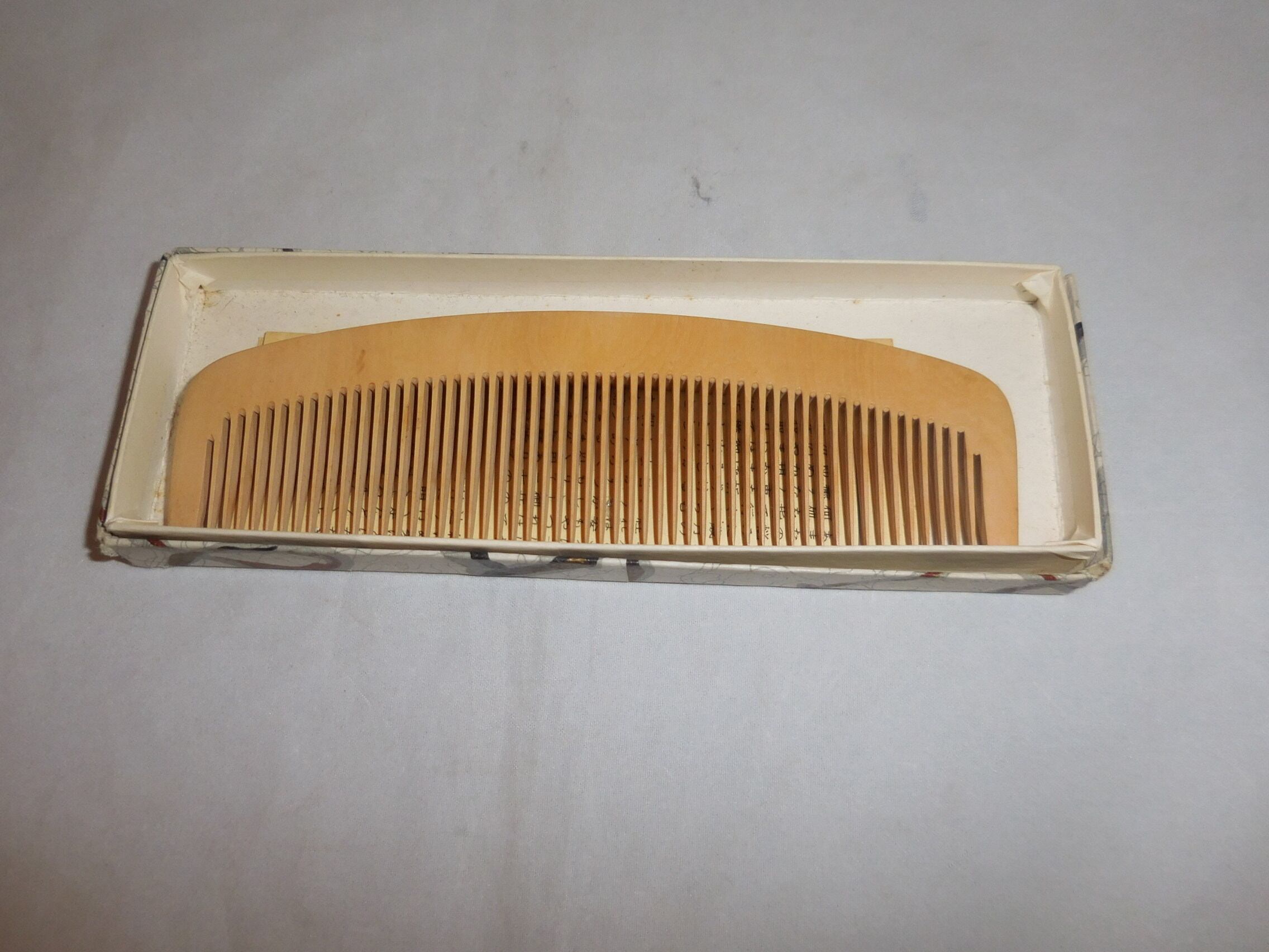 日本製(vintage) length縦4cm☓width横13.3cm ~いっちゃん店主のコメント~ お六櫛(説明書付き) 共箱で未使用です。