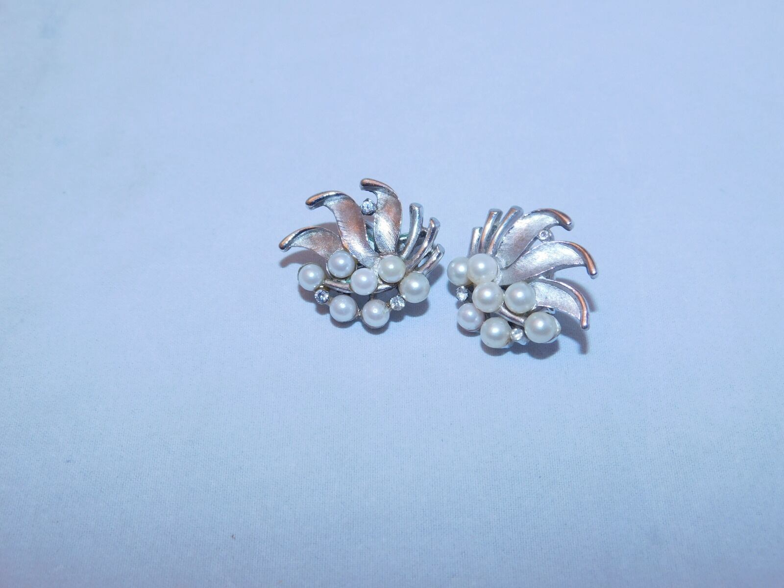 length縦2.4cm ☓width横2.6cm ~いっちゃん店主のコメント~ いぶした銀色がおしゃれ。 TrifariIのパール色イヤリングです。