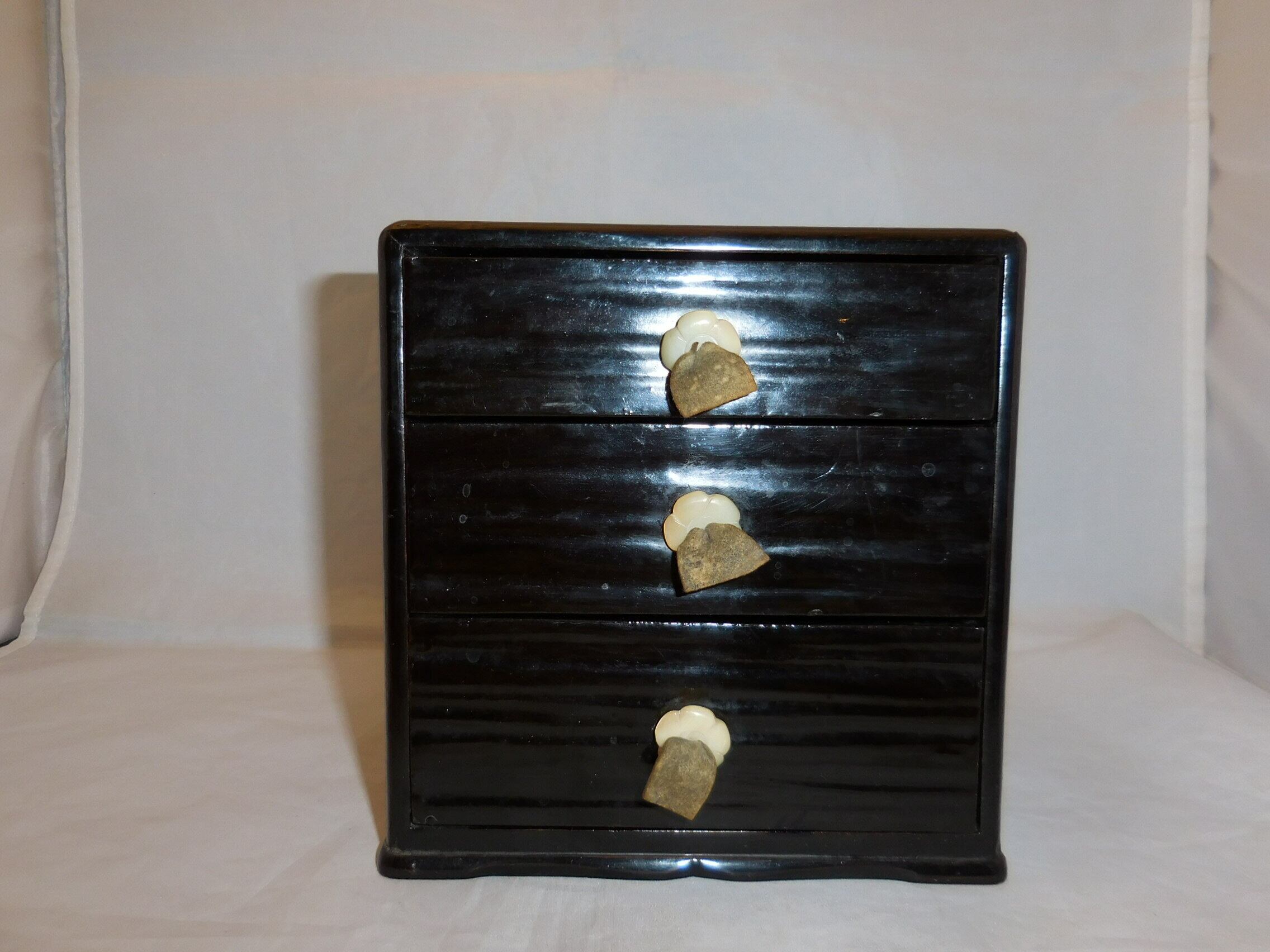 縦length 13.5cm☓横width14.5cm ☓高さheight 15cm over 90~100 years old 大正 ~いっちゃん店主のコメント~ 引き手が鹿皮です。