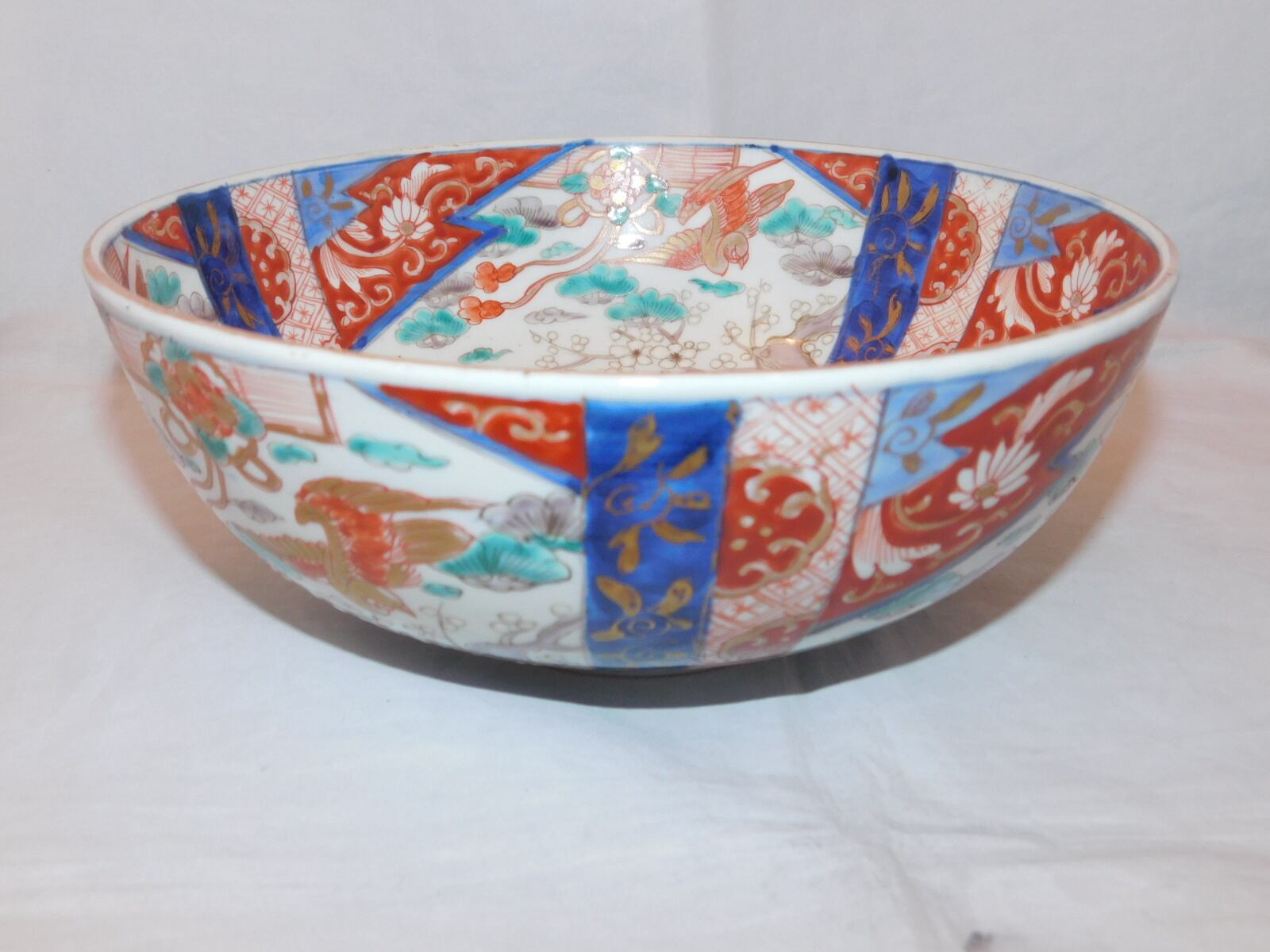 diameter直径Φ21.5cm☓height高さ9cm 江戸幕末 over 150〜170years old ~いっちゃん店主のコメント~ 松竹梅に鳳凰の絵、青色が効いています。