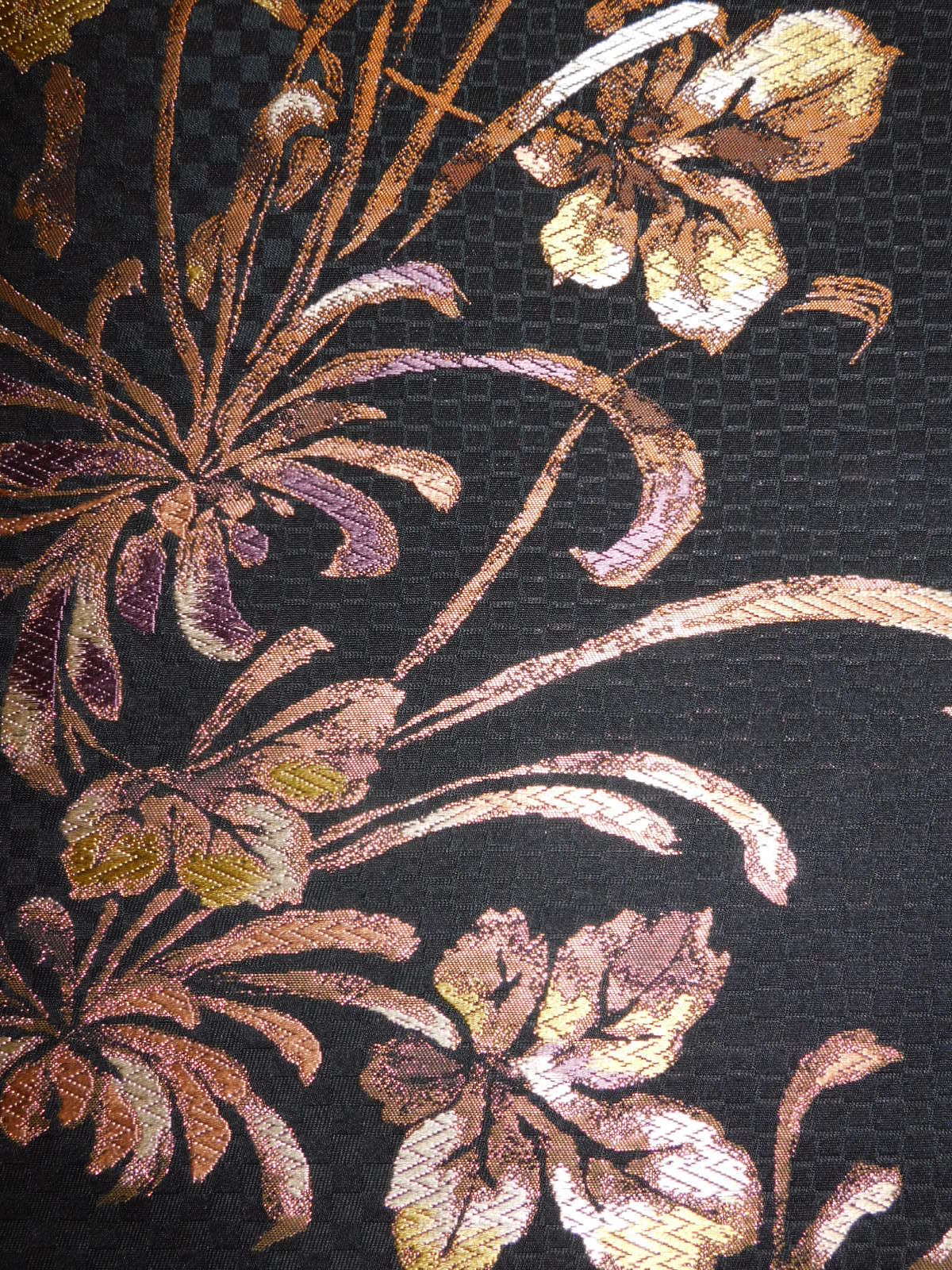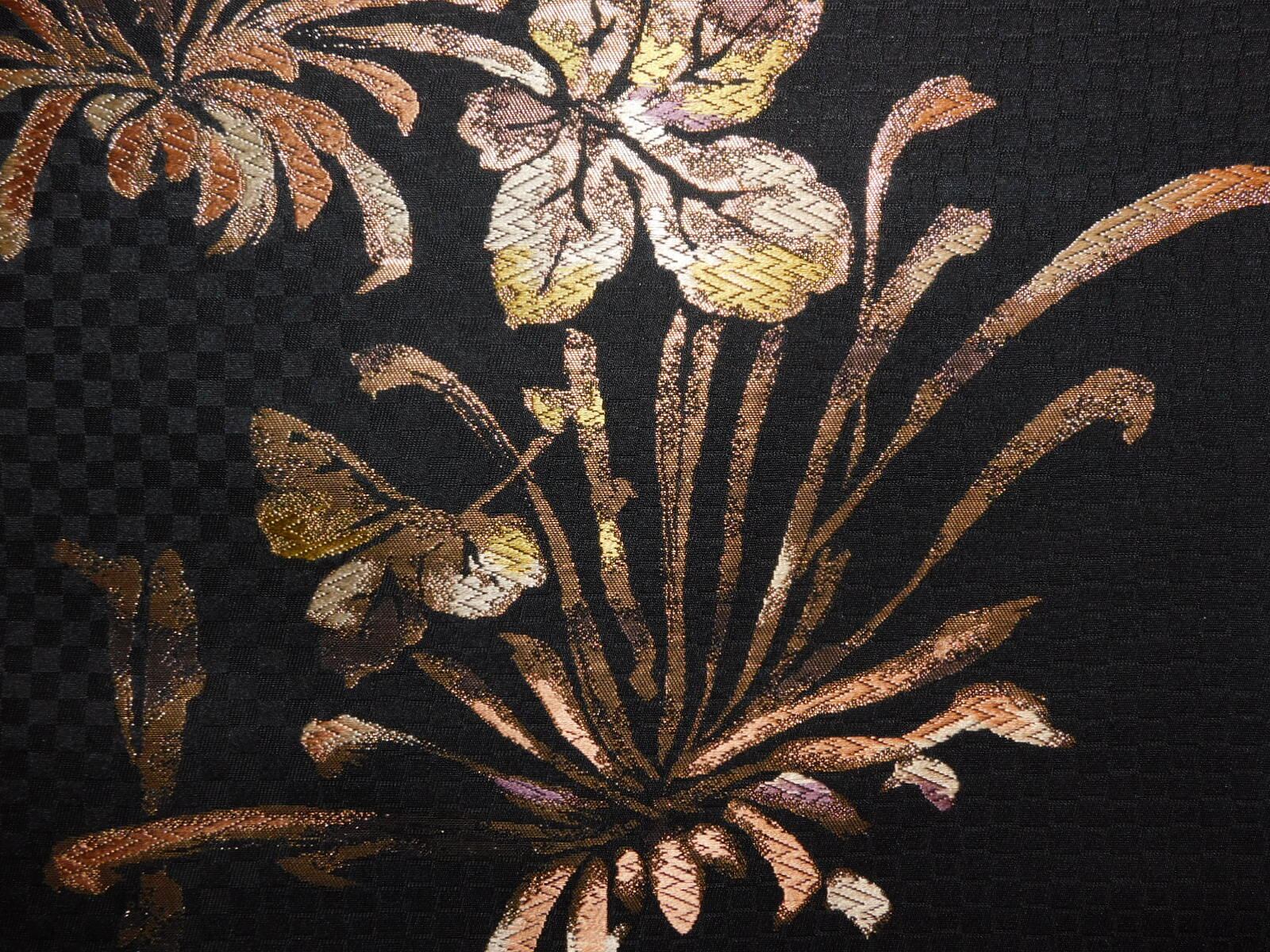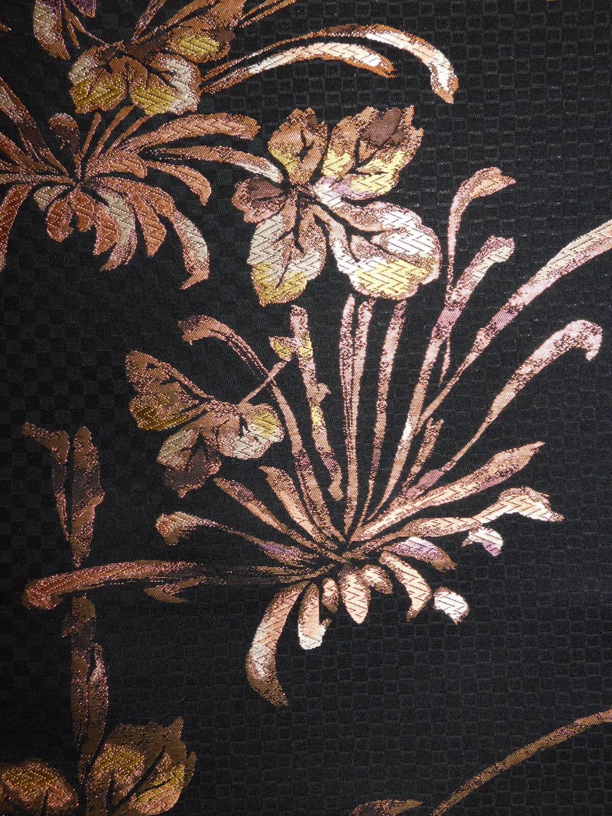 width 31.5cm☓length 約440m ~いっちゃん店主のコメント~ 黒色地に花模様。 黒地は振袖用以外はなかなかないです・