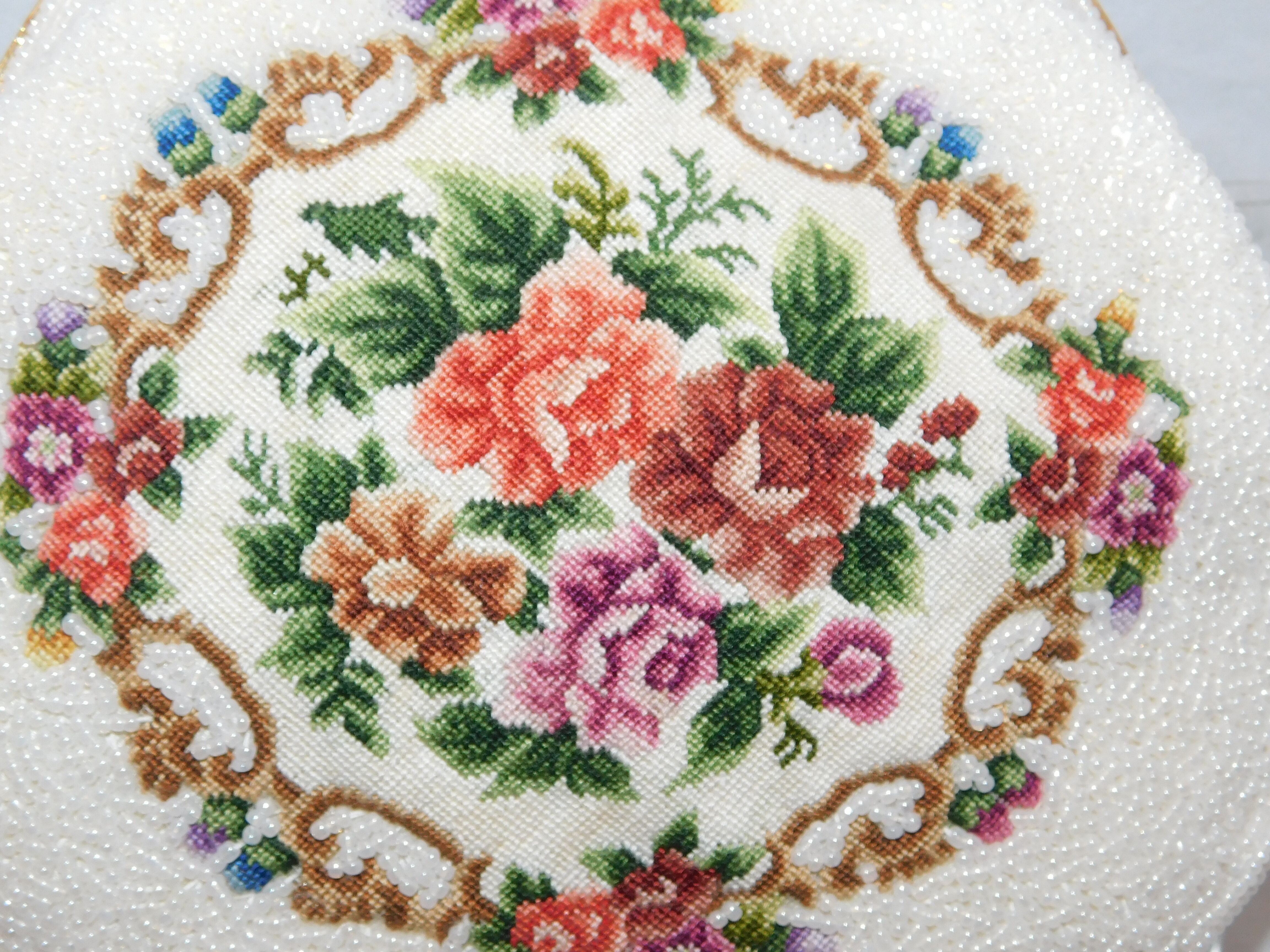 breadth横185cm☓length縦16cm(手の部分を除く)☓width幅3.3m ~いっちゃん店主のコメント~ 真ん中プチポワン刺繍、ビーズバックです