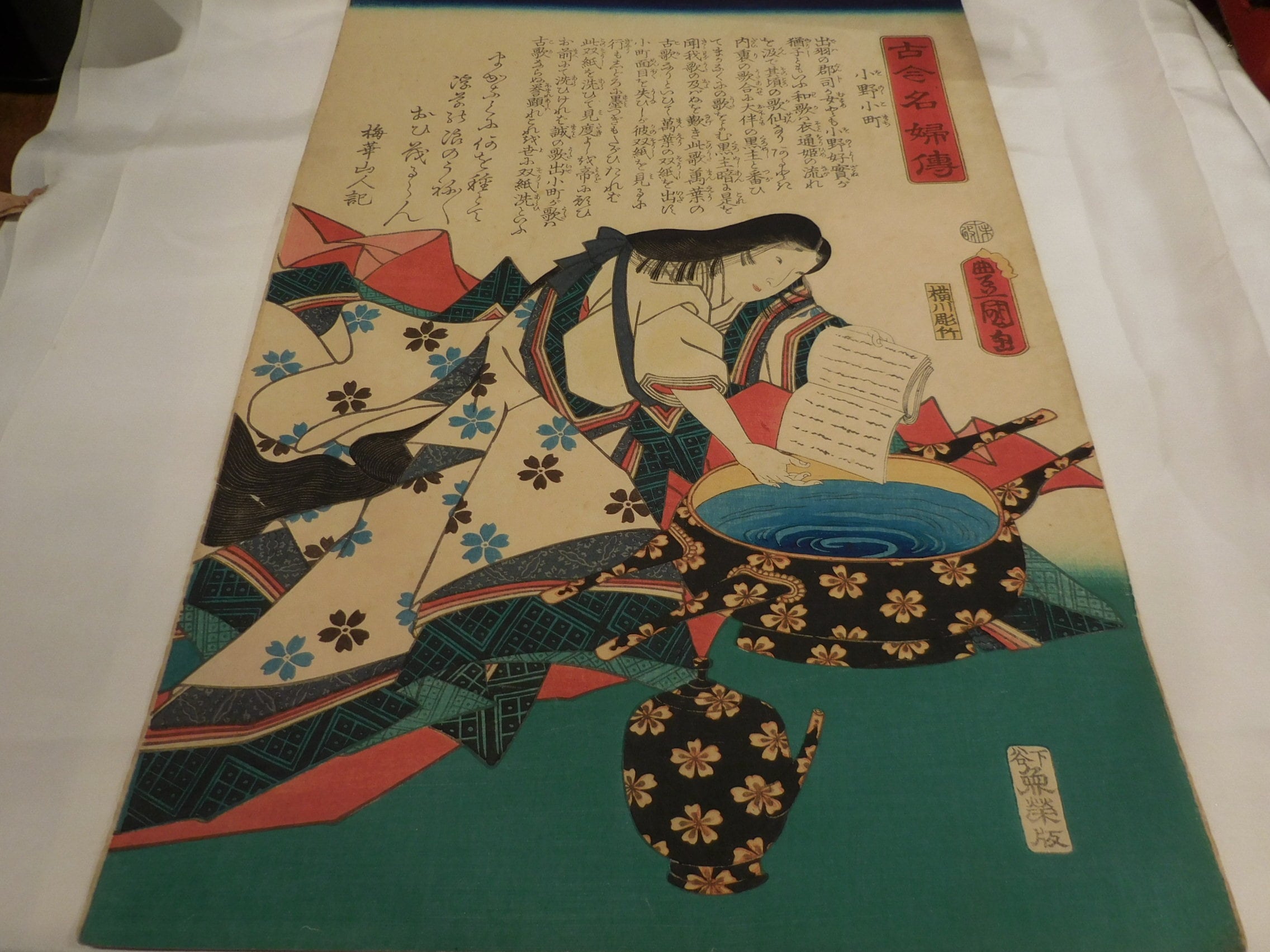 縦37cm☓横25.5cm 安政6年 1859年 印 谷下 魚榮 版元 横川彫竹 彫氏 over 158 years old ~いっちゃん店主からのコメント~ かの有名の小野小町、美しいです。