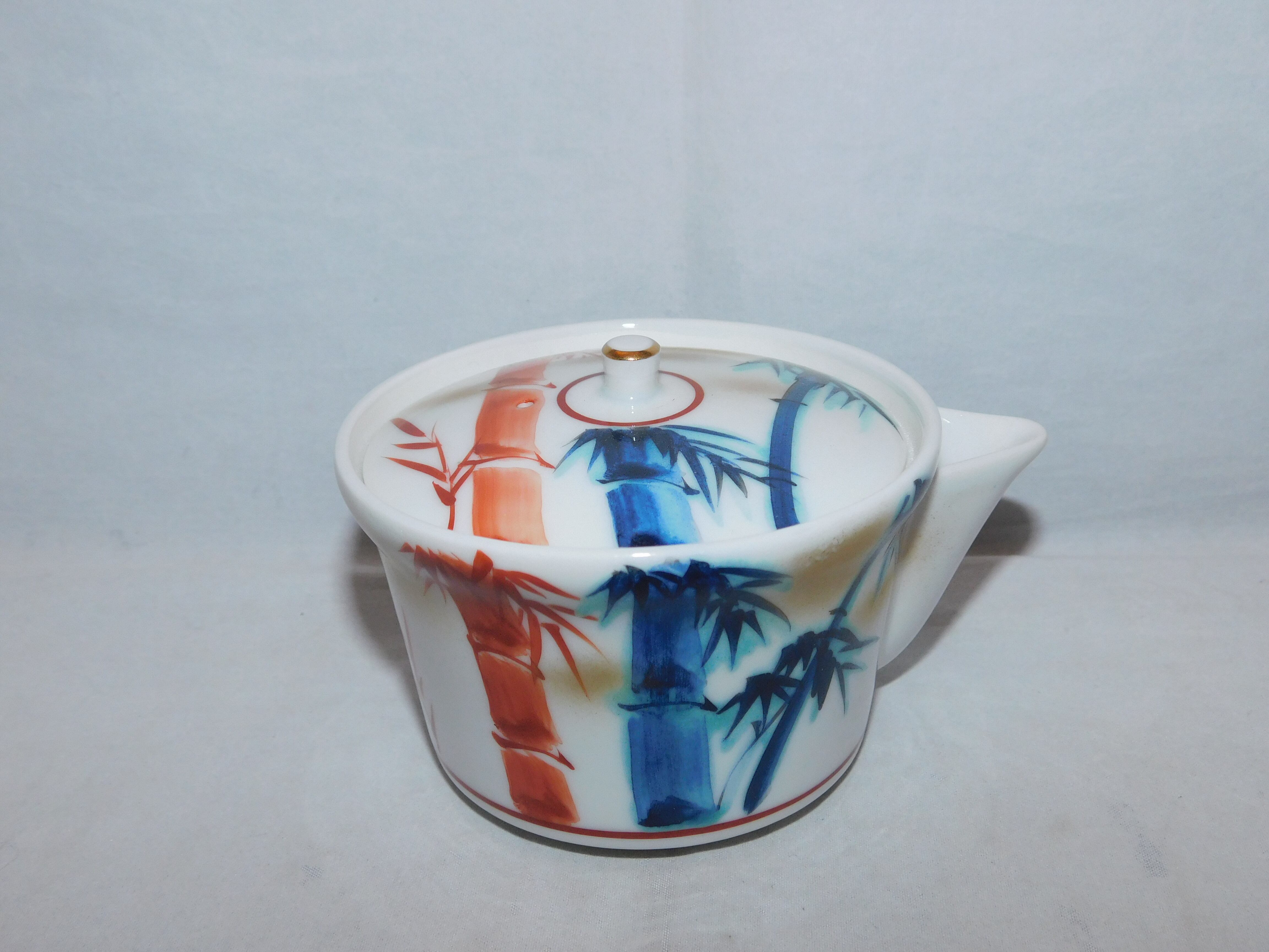 急須 diameter直径 8.5 cm☓ height高さ6cm 茶碗 diameter直径Φ6cm☓ height高さ3.8cm 4客 湯冷しwidth横幅8cm☓ height高さ4.5cm over 30~40 years old ~いっちゃん店主のコメント~ 竹模様で小振りです