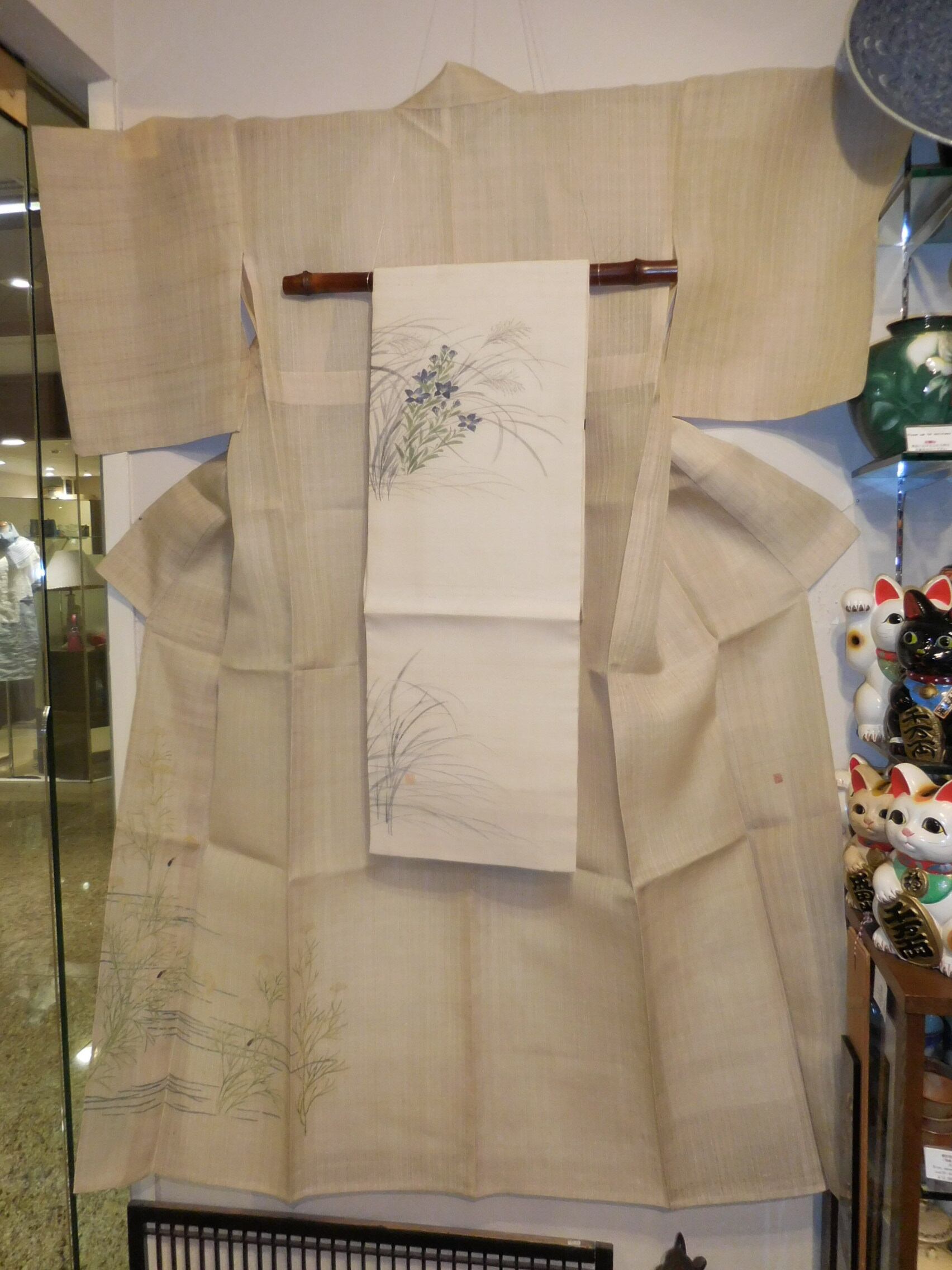赤城生紬麻の反物に加賀友禅作家鶴里保洋先生に