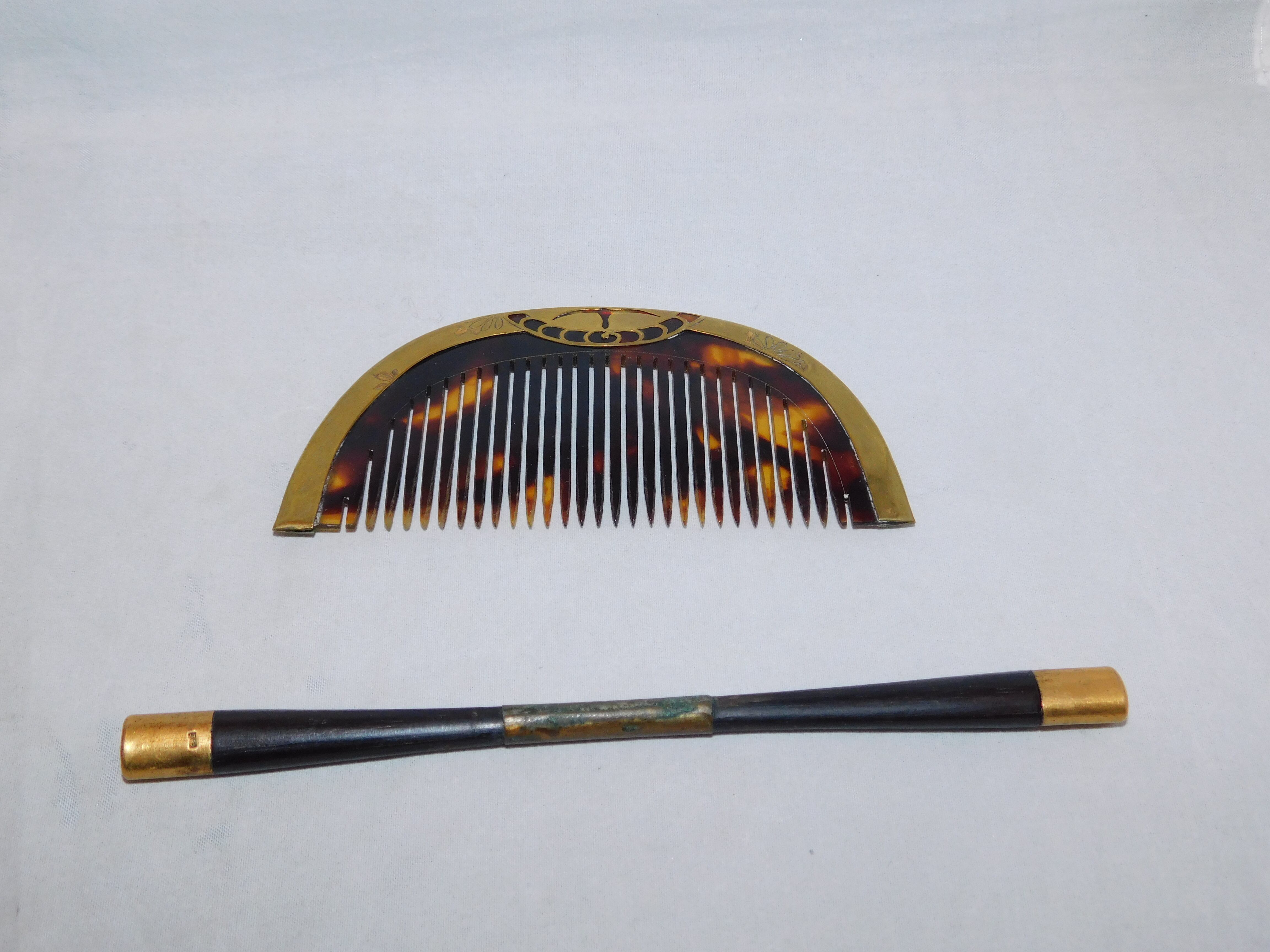 櫛 length縦4.5cm☓width横10cm 笄(こうがい) 長さlength 15.5cm ~いっちゃん店主のコメント~ シンプルなデザインの櫛&笄です
