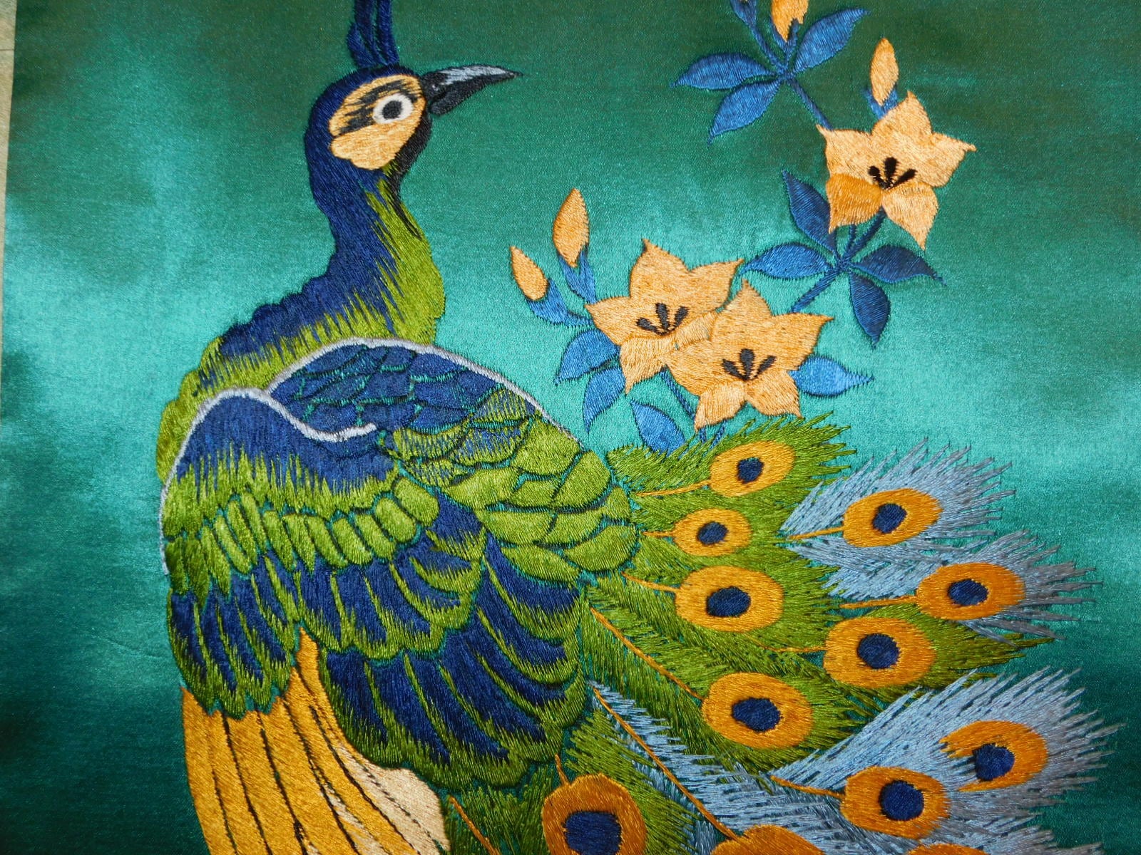 孔雀日本刺繍の開き名古屋帯 Nagoya obi sash (peacock)