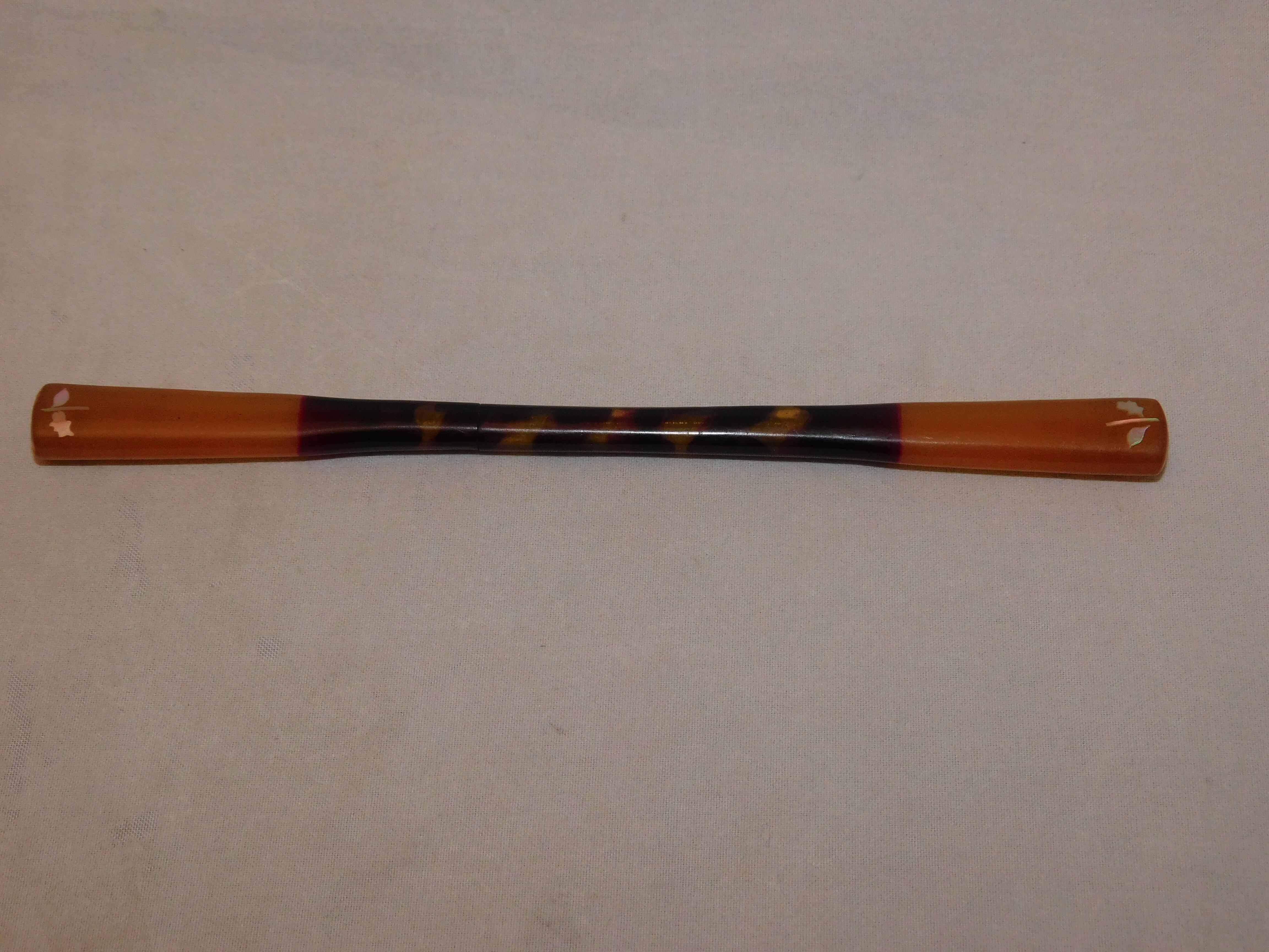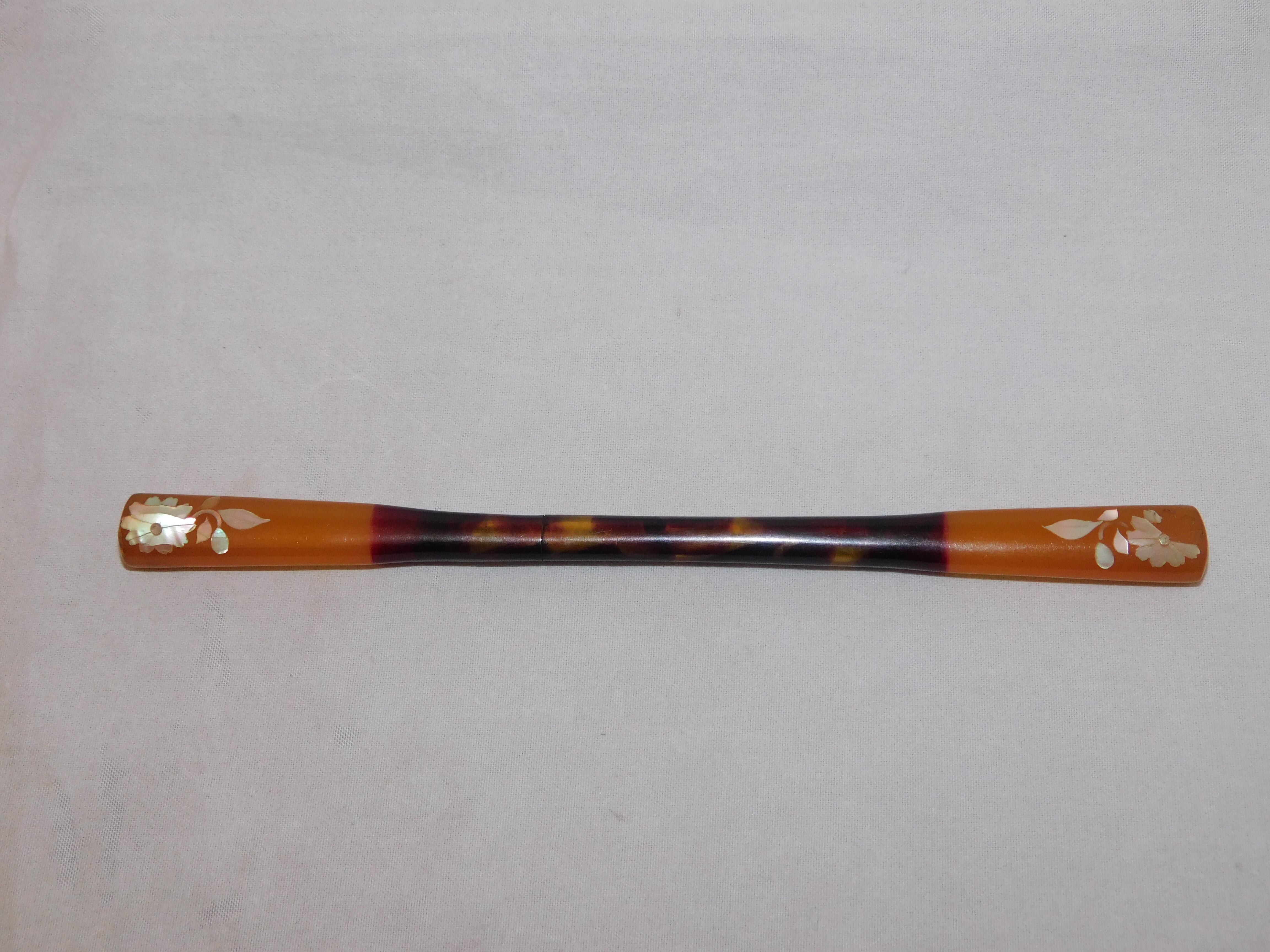 日本製(antiquees) 笄(こうがい) 長さ 14.3 cm ~いっちゃん店主のコメント~ 鼈甲に花模様の螺鈿細工
