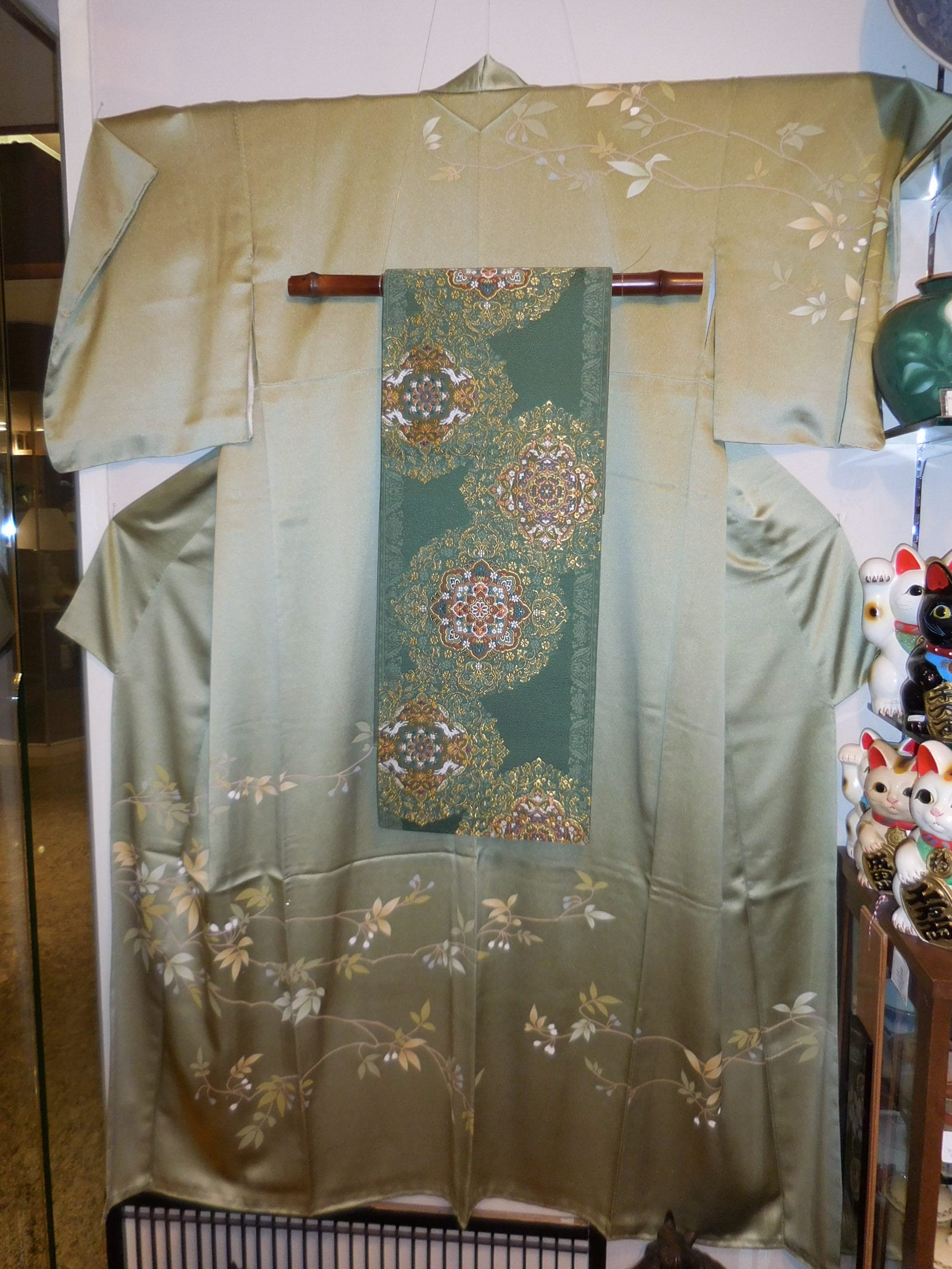 繻子綸子糸目手描友禅袷訪問着 silk Kimono(No2)