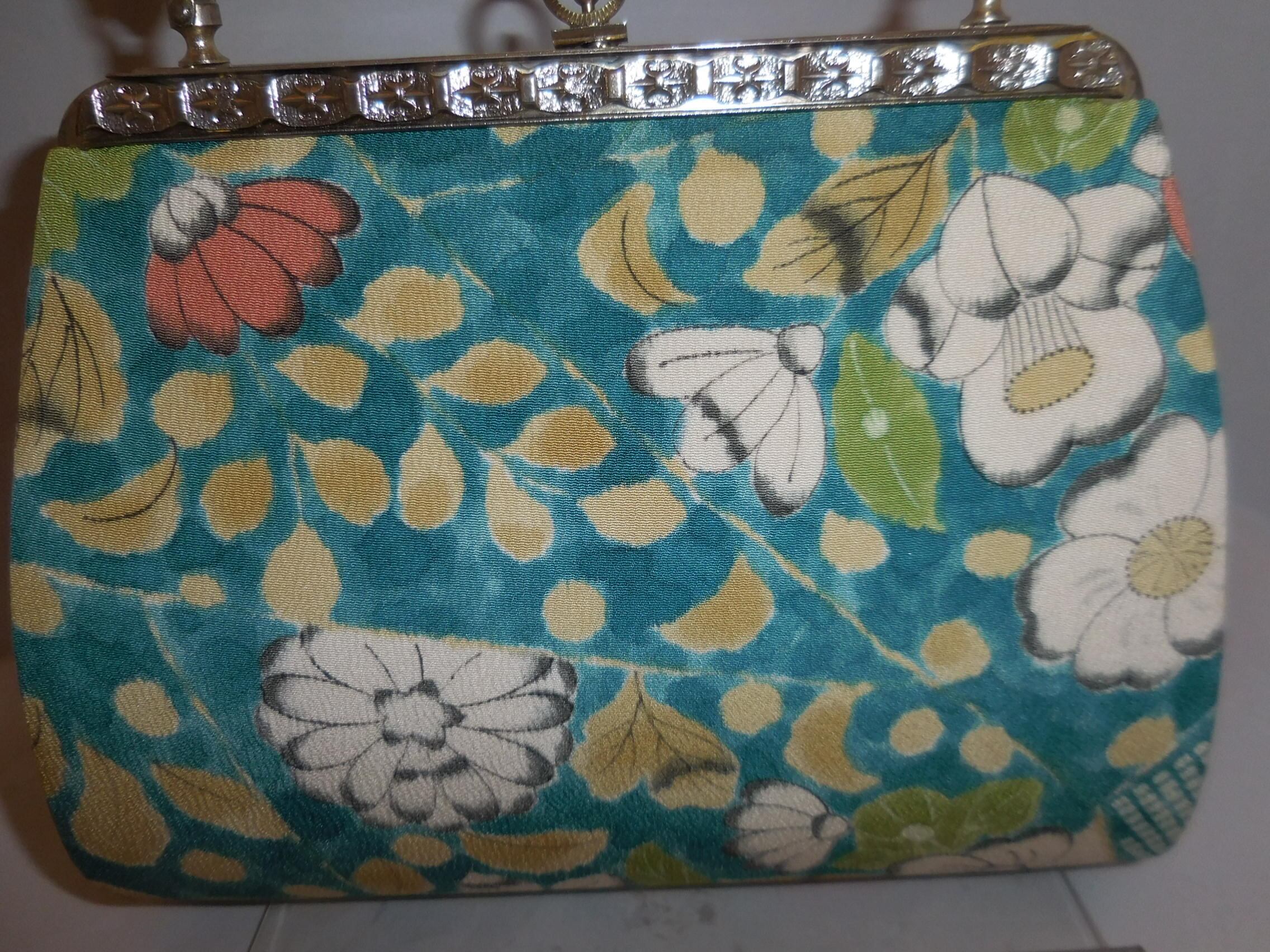 縮緬和装バック Kimono fabric bag(made in Japan)Turquoise Blue