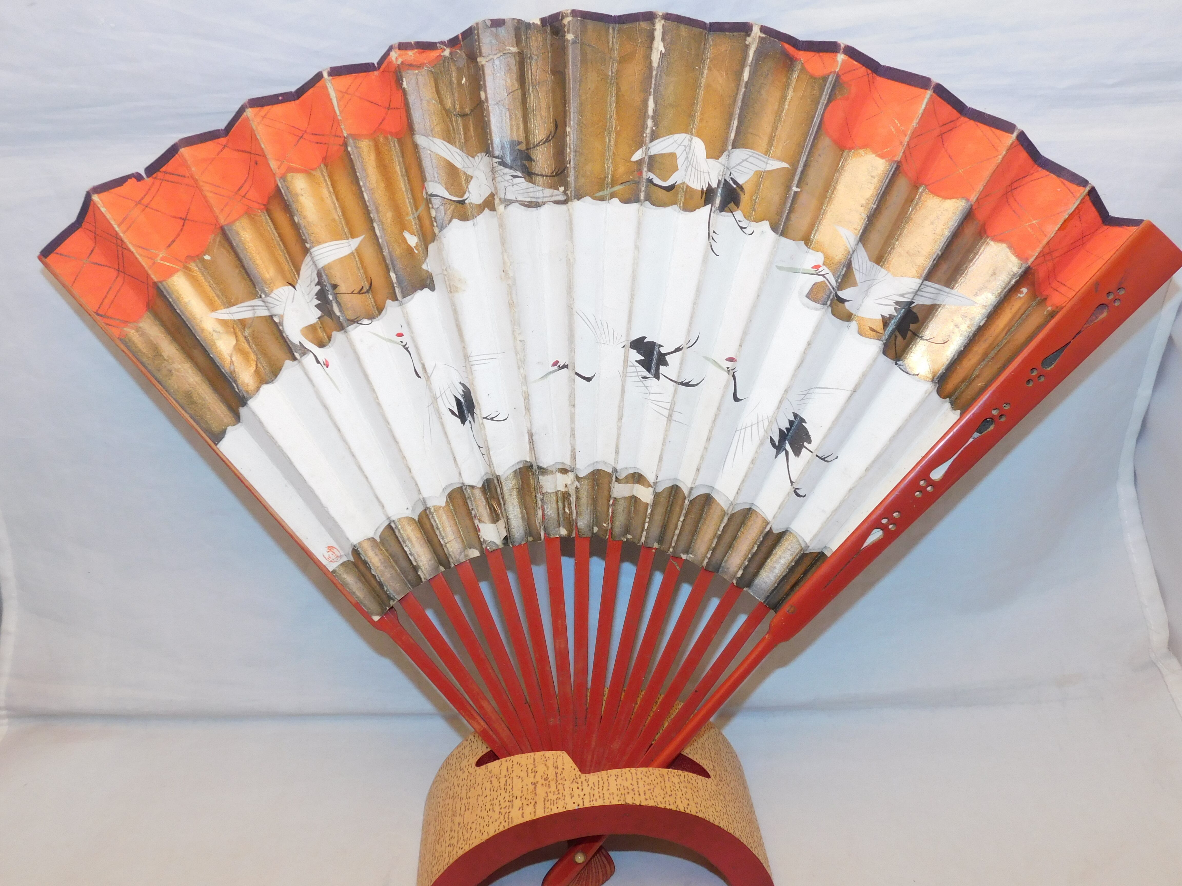 Stand is excluded 31cm、飾り台付いていません。 ~いっちゃん店主のコメント~ 源氏物語の雰囲気の扇です。 少々のダメージはあります。